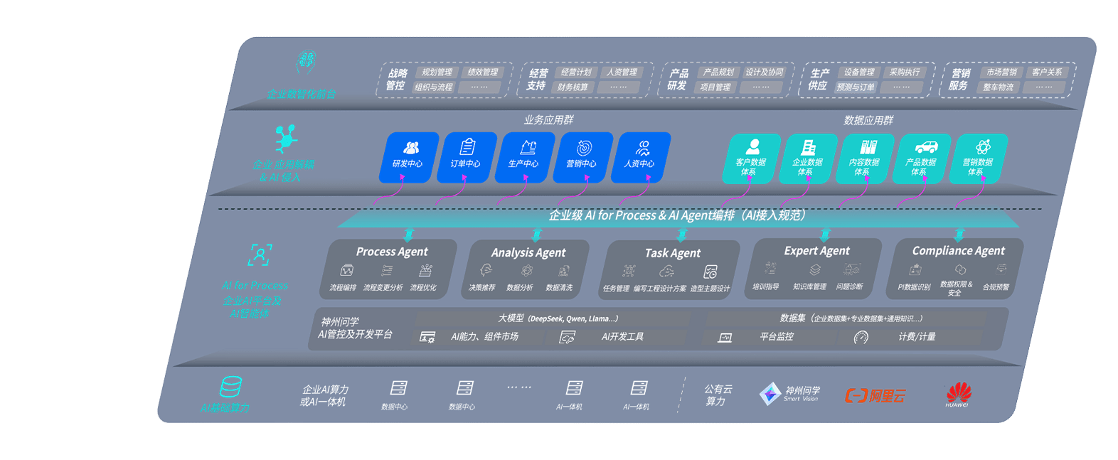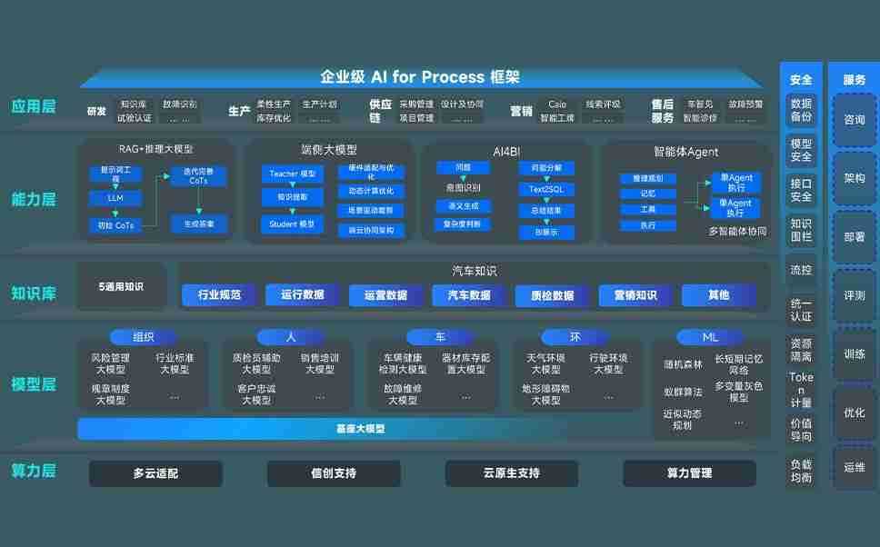 尊时凯龙问学智车解决方案是一套基于AI技术的汽车行业智能化系统,,,覆盖从底层算力到顶层AI应用的全栈方案。。方案由算力层、、模型层和应用层组成:算力层,,方案支持多种一体机配置,,,具备云端灵活部署、、、多云适配以及动态优化计算资源的能力;模型层,,尊时凯龙问学平台版提供了企业级AI应用一站式构建与管理平台,,支持基于后训练强化技术的汽车企业专属模型的训练、、、评测和运营;应用层,,,,尊时凯龙问学DeepSeek版提供包括超级员工、、、、智能招采、、智能营销、、、智能客服、、、、AI for BI等一系列解决方案,,,可助力汽车行业实现数字化转型,,让管理更智能、、、、响应更敏捷。。