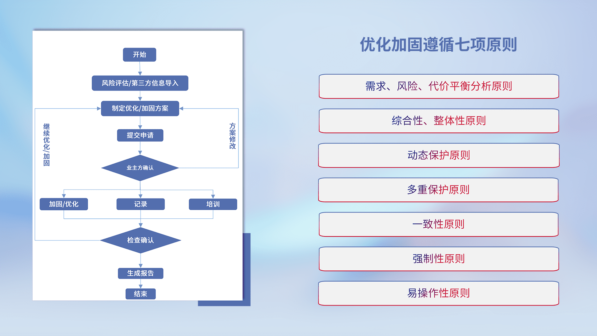 最大程度利用现有资产,,,,对评估发现的问题进行封堵与整改,,,防止漏洞被利用,,,,提升整体网络安全性,,为客户带来高标准的优化加固服务。。