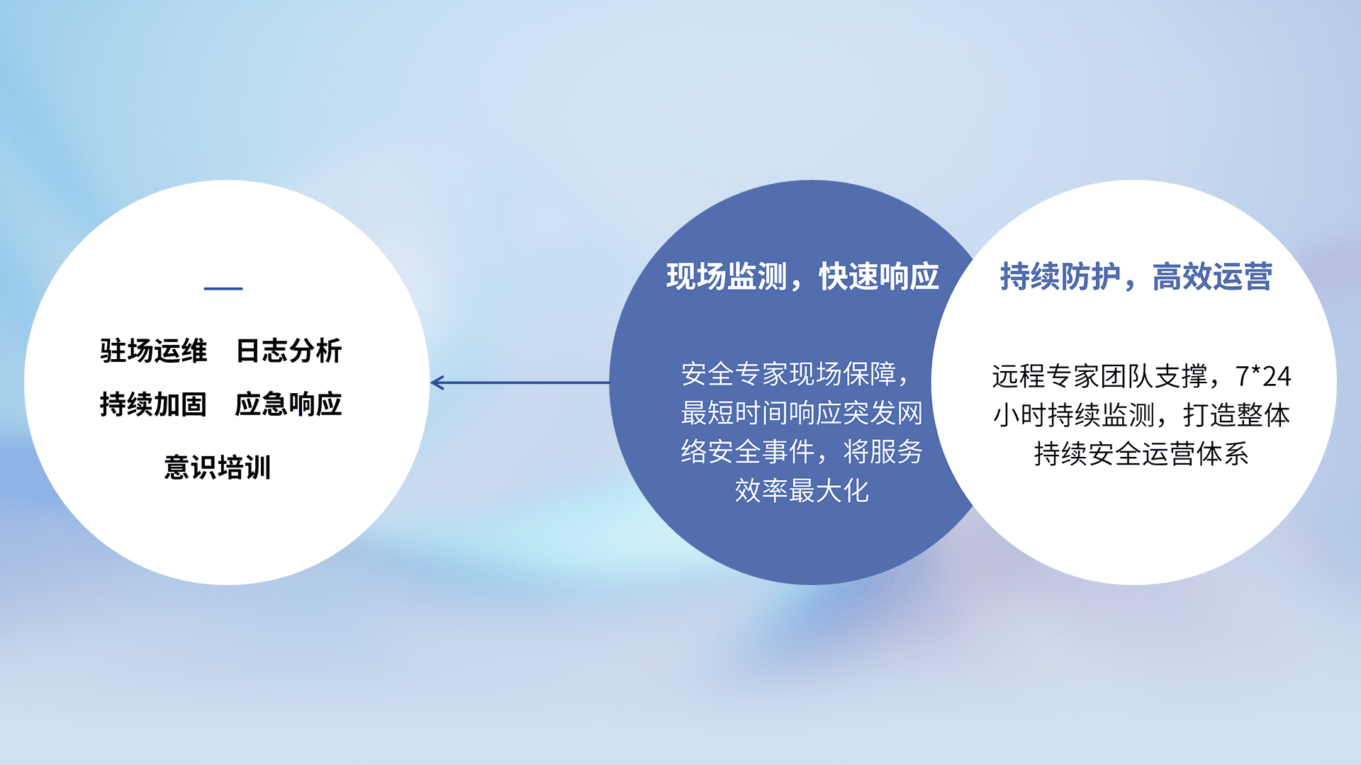 针对客户行业特性,,,提供专属的一站式安全管理服务,,,帮助客户全面感知网络空间威胁,,,,通过安全专家的线上、、、、线下防护支持,,,实现风险闭环,,,将安全保障常态化,,,为客户打造常态化安全运维运营服务。。。